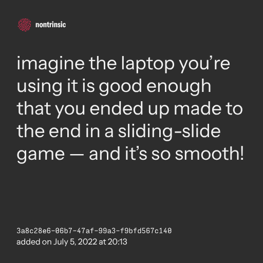 π€ shareimagine the laptop you’re using it is good enough that you ended up made to the end in a sliding-slide game β and it’s so smooth!