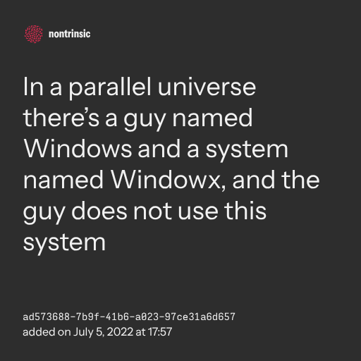 π€ shareIn a parallel universe there’s a guy named Windows and a system named Windowx, and the guy does not use this system