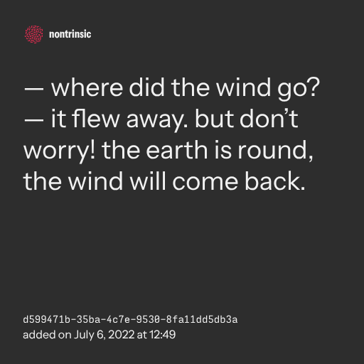 β it flew away. but don’t worry! the earth is round, the wind will come back.