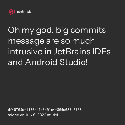 π€ shareOh my god, big commits message are so much intrusive in JetBrains IDEs and Android Studio!