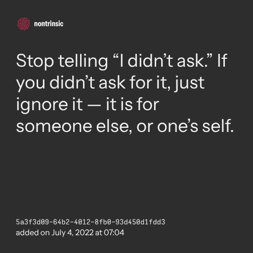 π€ shareStop telling “I didn’t ask.” If you didn’t ask for it, just ignore it β it is for someone else, or one’s self.
