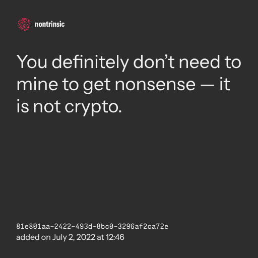 π€ shareYou definitely don’t need to mine to get nonsense β it is not crypto.