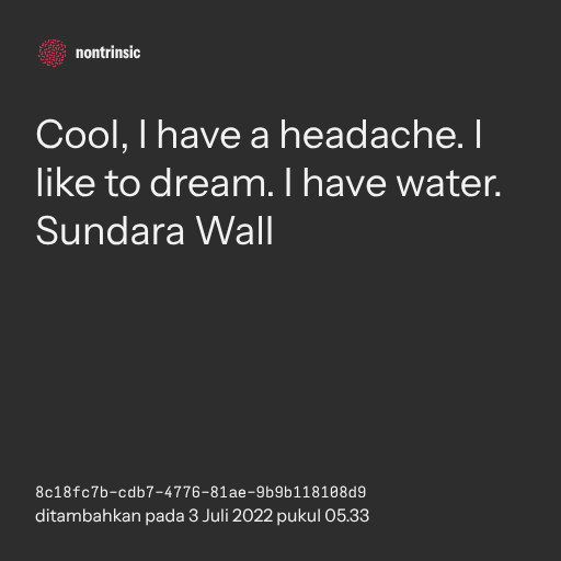 π€ shareCool, I have a headache. I like to dream. I have water. Sundara Wall