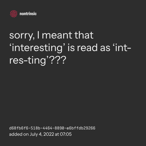 π€ sharesorry, I meant that ‘interesting’ is read as ‘int-res-ting’???