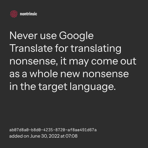 π€ shareNever use Google Translate for translating nonsense, it may come out as a whole new nonsense in the target language.