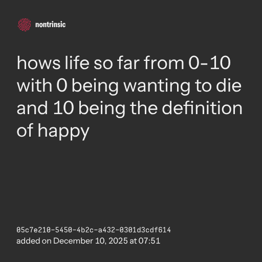 partagerhows life so far from 0-10 with 0 being wanting to die and 10 being the definition of happy