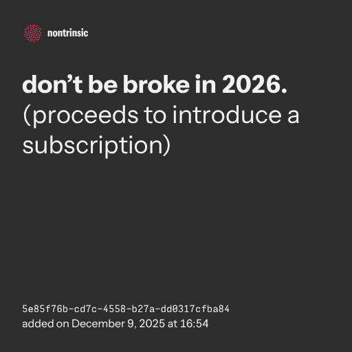 partagerdon’t be broke in 2026. (proceeds to introduce a subscription)