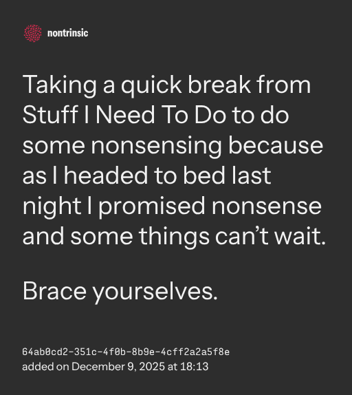 partagerTaking a quick break from Stuff I Need To Do to do some nonsensing because as I headed to bed last night I promised nonsense and some things can’t wait.