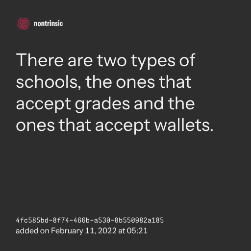 partagerThere are two types of schools, the ones that accept grades and the ones that accept wallets.