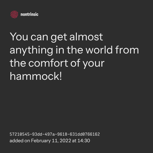 partagerYou can get almost anything in the world from the comfort of your hammock!