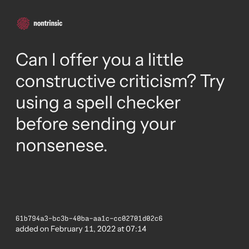 partagerCan I offer you a little constructive criticism? Try using a spell checker before sending your nonsenese.
