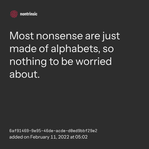 partagerMost nonsense are just made of alphabets, so nothing to be worried about.