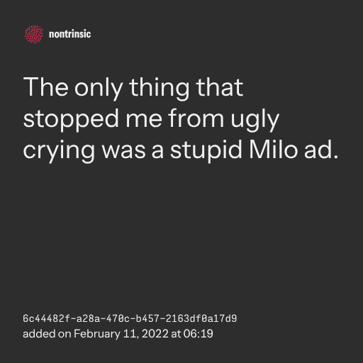 partagerThe only thing that stopped me from ugly crying was a stupid Milo ad.