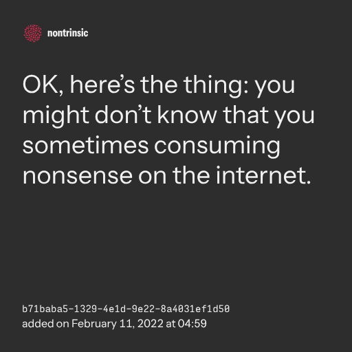 partagerOK, here’s the thing: you might don’t know that you sometimes consuming nonsense on the internet.