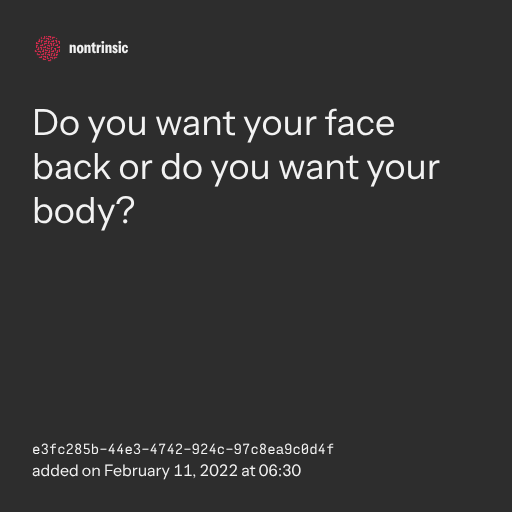partagerDo you want your face back or do you want your body?