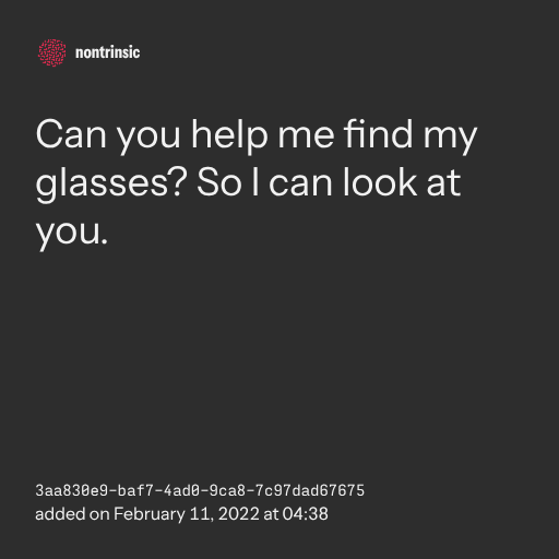 partagerCan you help me find my glasses? So I can look at you.