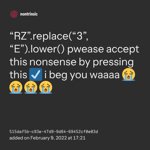 partager“RZ”.replace(“3”, “E”).lower() pwease accept this nonsense by pressing this ☑️ i beg you waaaa 😭 😭 😭 😭