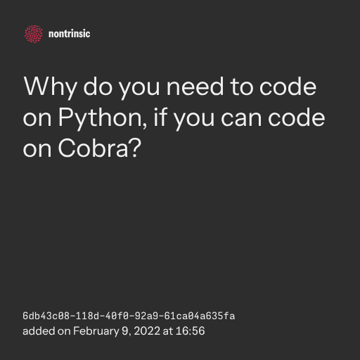 partagerWhy do you need to code on Python, if you can code on Cobra?