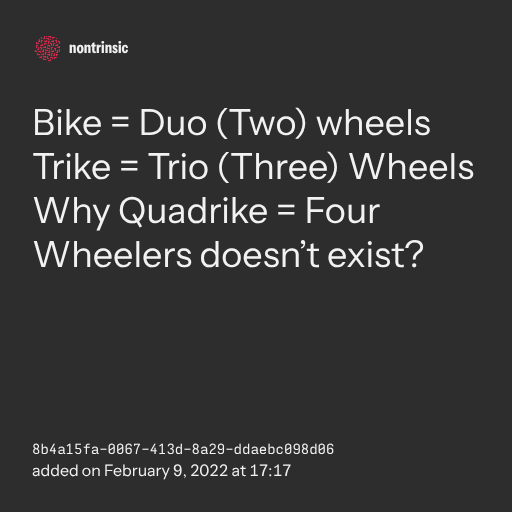 Why Quadrike = Four Wheelers doesn’t exist?