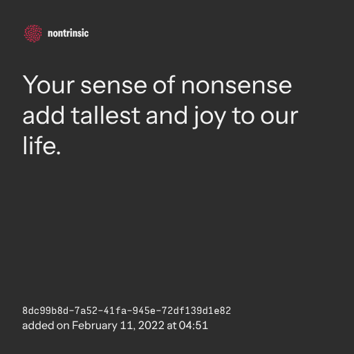 Your sense of nonsense add tallest and joy to our life.
