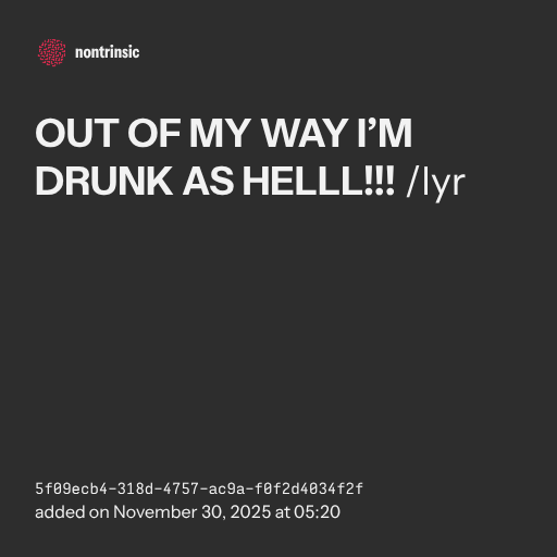 partagerOUT OF MY WAY I’M DRUNK AS HELLL!!! /lyr