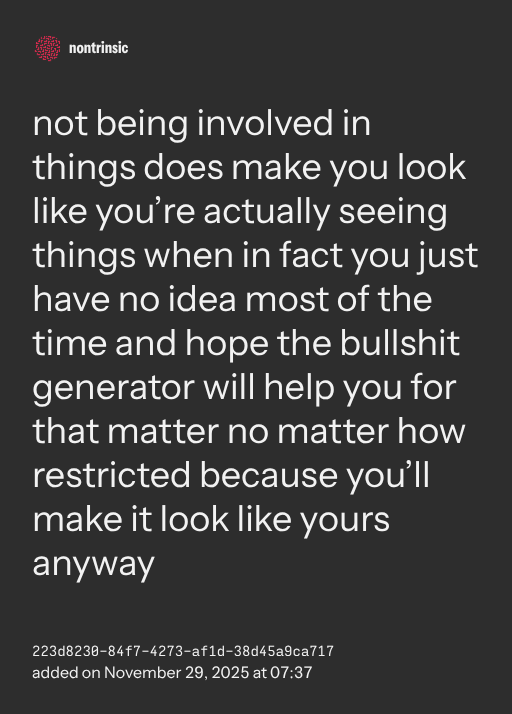 partagernot being involved in things does make you look like you’re actually seeing things when in fact you just have no idea most of the time and hope the bullshit generator will help you for that matter no matter how restricted because you’ll make it look like yours anyway