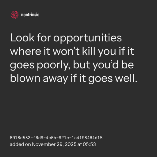 partagerLook for opportunities where it won’t kill you if it goes poorly, but you’d be blown away if it goes well.