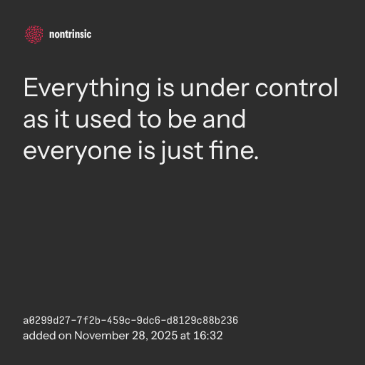 partagerEverything is under control as it used to be and everyone is just fine.