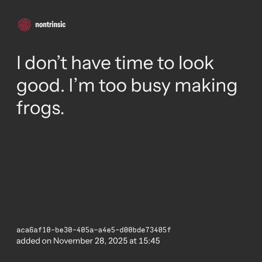 partagerI don’t have time to look good. I’m too busy making frogs.