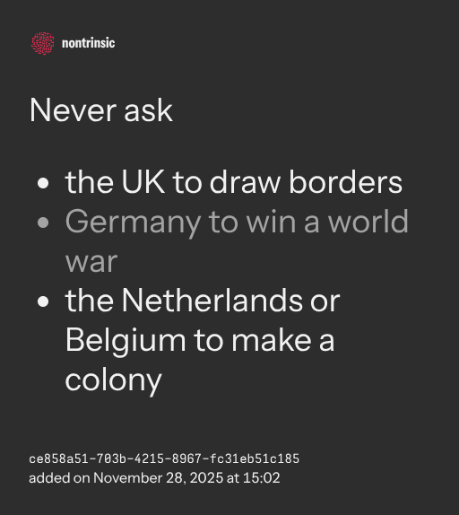 - the Netherlands or Belgium to make a colony