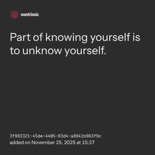 partagerPart of knowing yourself is to unknow yourself.