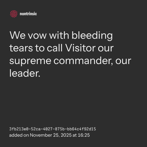 partagerWe vow with bleeding tears to call Visitor our supreme commander, our leader.