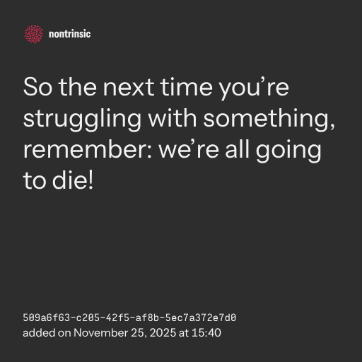 partagerSo the next time you’re struggling with something, remember: we’re all going to die!