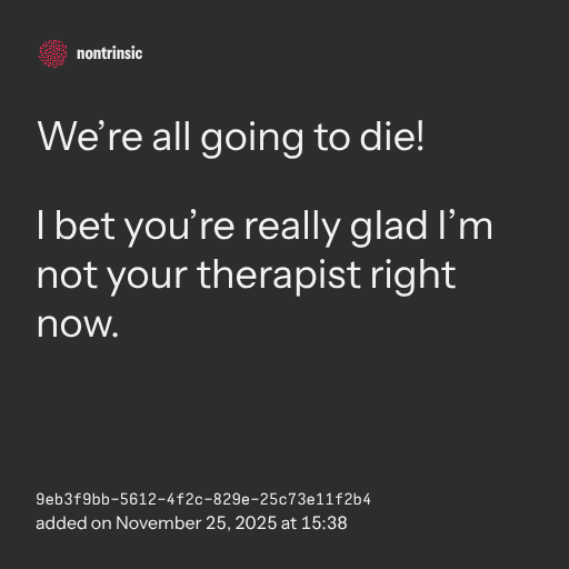 I bet you’re really glad I’m not your therapist right now.
