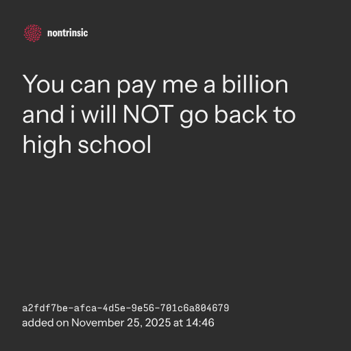 partagerYou can pay me a billion and i will NOT go back to high school
