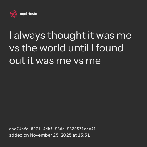 partagerI always thought it was me vs the world until I found out it was me vs me