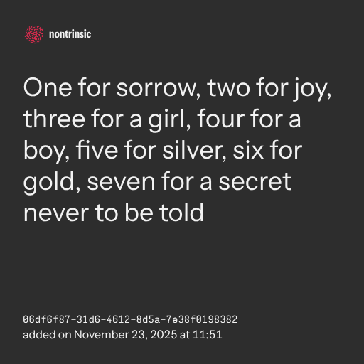 partagerOne for sorrow, two for joy, three for a girl, four for a boy, five for silver, six for gold, seven for a secret never to be told