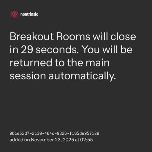 partagerBreakout Rooms will close in 93 seconds. You will be returned to the main session automatically.