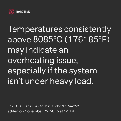 partagerTemperatures consistently above 8085°C (176185°F) may indicate an overheating issue, especially if the system isn’t under heavy load.