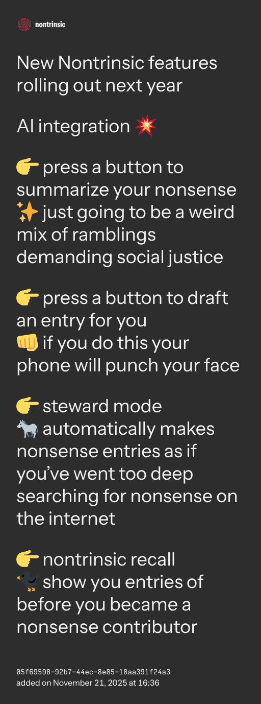 🫏 automatically makes nonsense entries as if you’ve went too deep searching for nonsense on the internet