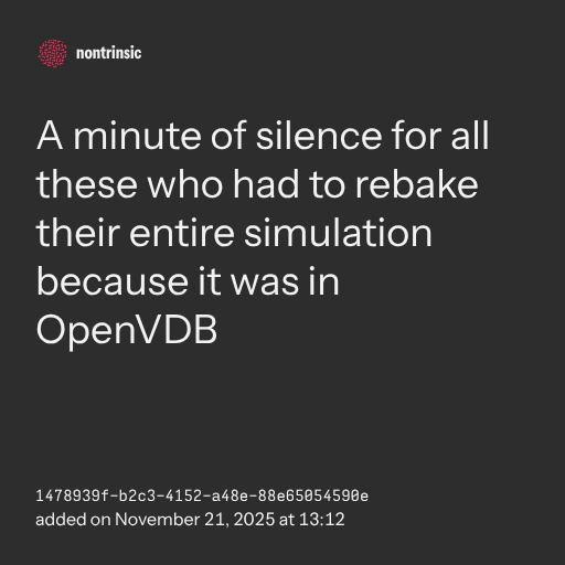 partagerA minute of silence for all these who had to rebake their entire simulation because it was in OpenVDB