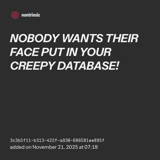 partagerNOBODY WANTS THEIR FACE PUT IN YOUR CREEPY DATABASE!