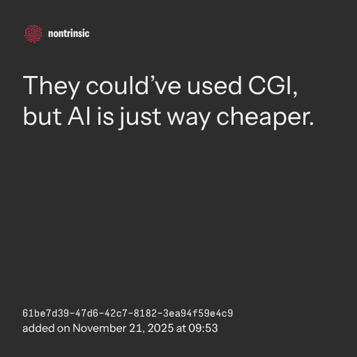 partagerThey could’ve used CGI, but AI is just way cheaper.
