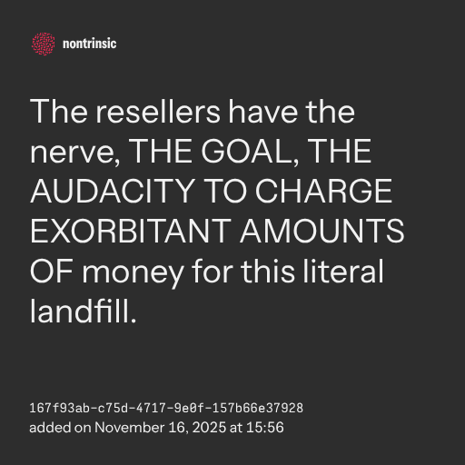 partagerThe resellers have the nerve, THE GOAL, THE AUDACITY TO CHARGE EXORBITANT AMOUNTS OF money for this literal landfill.