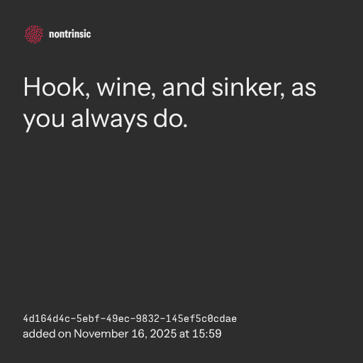 partagerHook, wine, and sinker, as you always do.