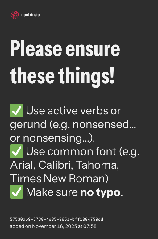 ✅ Use active verbs or gerund (e.g. nonsensed… or nonsensing…).