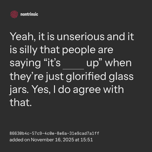 up” when they’re just glorified glass jars. Yes, I do agree with that.