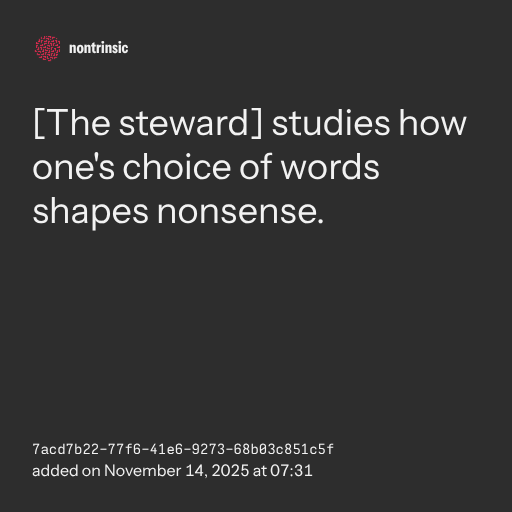 partager[The steward] studies how one's choice of words shapes nonsense.