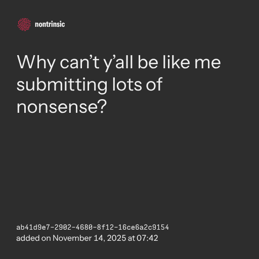 partagerWhy can’t y’all be like me submitting lots of nonsense?