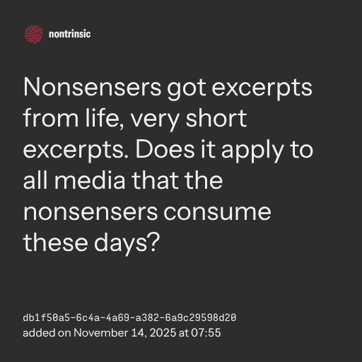 partagerNonsensers got excerpts from life, very short excerpts. Does it apply to all media that the nonsensers consume these days?